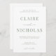 Moderne, elegante Hochzeitseinladung mit minimalistischem Weiß- und Weiß-Design. Mit dem leicht zu bearbeitenden Template können Sie Ihre Hochzeitsdetails individuell gestalten, mit einem eleganten Script-Schriftart und einem klassischen Serif-Schriftart. Wählen Sie am Ende der Einladung zwischen "Empfang zu folgen" oder "Abendessen und Tanzen zu folgen". Karo in der Kollektion "Sage Green Modern Elegant".