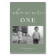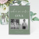 Moderne, elegante Hochzeitskarte mit minimalistischem Weiß- und Weiß-Design in Weiß und Grün. Die Tischnummer entspricht dem Alter des Paares und weist in diesem Alter schwarz-weiße Fotos auf. Personalisieren Sie mit Ihren Namen und Hochzeitstermin mit der leicht zu bearbeitenden Vorlage mit einem eleganten Script-Schriftart und klassischen Serif-Schriftart. Erstellen Sie so viele Tischnummern, wie Sie benötigen, indem Sie die "eine" zu Ihrer gewünschten Nummer ändern, die Fotos für sich austauschen und 1 Artikel in Ihren Warenkorb aufnehmen. Wiederholen Sie die Wiederholung für so viele Tischnummern wie nötig. Karo in der Kollektion "Sage Green Modern Elegant".