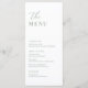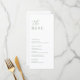 Moderne, elegante Speisekarte mit minimalistischem Weiß-Weiß-Design. Personalisieren Sie Ihre Veranstaltung mit der leicht zu bearbeitenden Vorlage mit einem eleganten Script-Schriftart und einem klassischen Serif-Schriftart. Karo in der Kollektion "Sage Green Modern Elegant".