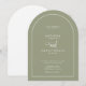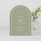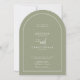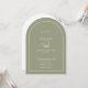 Eine elegante und moderne Weise grün bogenförmige Hochzeitseinladung mit minimalistischem Text mit handgeschriebenem Schriftzeichen-Akzent. Personalisieren Sie die Vorlage mit Ihren Hochzeitsdetails. © Kimbellished, LLC