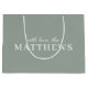 A stylish modern foto holiday gift bag with your surname featured in classic typography paired with a handwritten script machen in white a gorgeous sage green on the reverse. Fun, minimales Design to stand out from the crowd this christmas season!