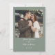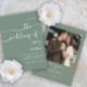 Feiern Sie Ihre Liebe mit dieser zeitgenössischen Salbeigrün-Hochzeitseinladung mit fließenden handgeschriebenen Schriften und einer passenden Fotokarte. Die moderne, minimalistische Einrichtung verleiht dem Hotel Raffinesse, während das personalisierte Foto es zu einem einzigartigen Hotel macht. Ideal für Hochzeiten im Garten, im rustikalen Stil oder romantisch im Freien.