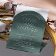 Moderne Typografie Bogen Hochzeitseinladung und Details mit QR Code auf der Rückseite in den Schattierungen von Salbei grün. Bitte kontaktieren Sie mich, wenn Sie weitere Informationen benötigen.