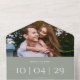 Eine elegante, grün minimalistische Alleinverheiratung, die Ihr Foto, Ihr besonderes Datum und Ihre Hochzeitsdetails Set in klassischer, eleganter Typografie bietet. Die Einladung enthält eine perforierte RSVP-Karte mit Ihrem Hochzeitswebseiten QR Code und Details. Entwickelt von Thisisnotme©