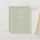 A sage green colored background decorated with a hand drawn crest. White colored frames and text. Personalize and your monogram initials, names and details.