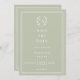 A sage green colored background, white frame. Personalize and add your monogram initials, names and the details.