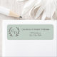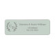 A sage green colored background. Decorated with a wreath. Personalize and add your names, address and your first name initials. Warm taupe colored text.