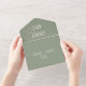 Minimalistische Sage Green One Day Away Probe Dinner Hochzeit Alles in einer Einladung