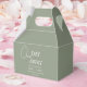 Moderne Sage Green und White Wedding One Day Away Probe Dinner Gefälligkeitsboxen