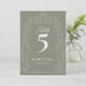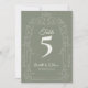 Sage Green Ornate Arch Wedding Table Number Dankeskarte