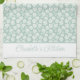 Hübsche Weiß-Weiß-Weiß-Bohypolen Küchenhandtuch. Grün ist ein helles Pfefferminzgrün mit weißen Blume. Monogram mit Ihrem Namen oder Text. Ein großartiges Brautparty- oder Hausgeschenk für die Erwärmung.