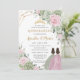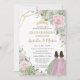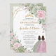 Sage Green Pink Floral Quinceañera Twins Butterfly Einladung