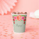 Mit diesem personalisierten Brunch Paper Cup mit Blumenmuster feiern Sie die Braut in elegantem Stil. Die zarte Gestaltung vor einem ruhigen, schlängelgrünen Hintergrund strahlt Raffinesse und Weiblichkeit aus. Die Blume ist von zauberhaften, rosa und pfirsichfarbenen, von üppiger Vegetation umgebenen umgeben und bietet eine faszinierende botanische Landschaft, die sich perfekt für einen Frühlingsfest eignet. Die Zugabe von lebendigen roten Erdbeeren fügt einen Pop von Farbe und eine Touch von Süße, die die Freude und Aufregung des Ereignisses widerspiegelt. Diese Tasse verkörpert das Wesen eines schicken Brautparty-Brunch, der die Bühne für gepflegte Erinnerungen schafft.