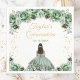 Diese elegante und glamouröse Quinceañera Geburtstagserviette besticht durch eine wunderschöne Prinzessin mit dunklem Haar in einem schlauen, grünen Ball. Der Text kombiniert handgeschriebene Skripte mit modernen serifenlosen Schriftart für ein elegantes und raffiniertes Aussehen. Die Blumenarrangements und die Goldkonfetti bilden die perfekte Mischung aus rustikal und schick. Grafiken von www.etsy.com/uk/shop/SunflowerDayLove