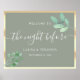Elegante Probe Dinner Willkommensschild in sanften Salbei grün mit Aquarell Eukalyptus Blätter und Imitate goldenen Rand. Ein raffiniertes und modernes botanisches Design, das sich perfekt eignet, um die Gäste in der Nacht vor Ihrer Hochzeit zu empfangen. Personalisieren Sie mit Ihren Namen und Datum. Für benutzerdefinierte Hilfe oder passende Elemente senden Sie mir eine E-Mail an bpkolman@gmail.com