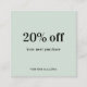 Grün Hintergrund, schwarzer Text vorne: Ermäßigung hinzufügen. Zurück: Personalisieren Sie Ihren Namen, Ihre Adresse, Ihre Telefonnummer, Ihre E-Mail, Ihre Website-Adresse, Ihren qr-Code auf Ihrer Website oder Ihrem Social-Media-Konto.