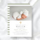 Personalisiert Sage Green Religious Cross Foto Taufe Einladung.