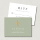 Sage Green Religious Wood Cross Taufe RSVP Karte