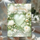 Sage Green Rococo Floral Heart Galentine Elegance opens with a serene, romantic palette centered on soft sage green, ivory, and whisper-white florals arranged in a luminous heart composition. The central heart appears gently sculpted and glowing, framed by lush garden roses, camellias, and delicate blossoms that evoke refined Rococo and Baroque influences. The background carries an airy, pastel wash with subtle light diffusion, creating a dreamy, vintage-inspired atmosphere that feels both fresh and timeless.