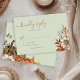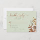 Modern rustic watercolor botanical flowers, pumpkin, foliage, pampas grass and dried leaves making a chic autumn-fall wedding invitation kindly reply script sage green RSVP card with a trendy handwriting calligraphy script and an earthy terracotta beige color palette