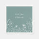 Diese Hochzeitsserviette zeigt weiße Linien Zeichnungen von Wildblumen auf einem grünen Weiß-Hintergrund. Das Hotel ist Teil einer wunderschönen Hochzeitssuite mit Einladung, Speisekarte, Tischnummern und anderen wichtigen Hochzeitsartikeln.