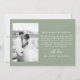 Senden Sie eine herzliche Wertschätzung mit diesem Sage Green Script Foto Wedding Dankeschön Card. Mit einem weichen, grünen Hintergrund, einem eleganten Skript-Schriftart und Platz für Ihr Lieblings-Hochzeitsgeschenk-Foto, bringt dieses Design eine zeitlose und Bio Touch in Ihre Post-Hochzeitsarbeit. Ideal für rustikale, minimalistische oder naturlich inspirierte Hochzeitsszenarien, ermöglicht es Ihnen, sich mit Ihren Namen und Botschaften zu personalisieren, um einen gedankenvollen Genuss zu schaffen, den Ihre Gäste schätzen werden.
