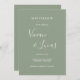 Sage Green Script Wedding Save the Date Card mit Signature Stilnamen, diese elegante Sage Green Save the Date Karte kann mit Ihren besonderen Hochzeitstag Informationen in schicken Schriften personalisiert werden.