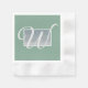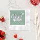 Ein silbergrüner Hintergrund mit einem Rechteck aus silberfarbenen Imitaten mit weißem Rand, der durch ein Monogramm hervorgehoben wird. Fügen Sie Namen und Datum hinzu, wie Sie möchten. Das macht eine schöne Serviette für Hochzeitsfeiern oder Feste. Bereit für Sie zu personalisieren.