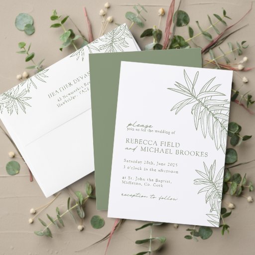 Sage Green Simple Botanical Leaves Wedding Designt von Amour Paperie
