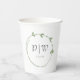Mit diesen weißen Tassen aus Papier, die eine trendige, schlaue grüne Farbe, einen einfachen Herzkranz mit Bräu- und Bräutigam-Initialen und das in stilisierten Schriften gedruckte Hochzeitstermin aufweisen, verleihen Sie Ihrem Hochzeitsfest Eleganz. Bearbeiten und ersetzen Sie die Initialen und das Datum mit Ihrem eigenen.
