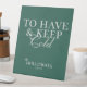 Fügen Sie eine spielerische und praktische Touch zu Ihrer Hochzeit mit dieser Seite Grün "haben und kalt Behalten" kann Cooler Gefallen Zeichen. Mit stilvoller Kalligraphie und einer sauberen, minimalistischen Anordnung lädt dieses Schild die Gäste dazu ein, sich an Ihrer Bar- oder Getränkestation einen Drink-Mantel zu gönnen. Die sanfte, grüne Farbe ergänzt romantische, rustikale Hochzeiten oder Hochzeiten im Gartenbereich und schafft so ein zusammenhängendes und glänzendes Aussehen. Dieses Schild ist perfekt für die Verbindung mit personalisierten Coozies und ist eine charmante Ergänzung zu Ihrer Empfang-Dekoration.