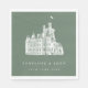These elegant wedding napkins feature a vintage illustration of a castle, which you can replace with an image of your destination wedding venue. Serif lettering lays out the couple's names and the date of the wedding, on a sage green background.