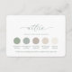This elegant wedding attire color palette card features a soft sage green and ivory-inspired palette designed to guide guests in choosing harmonious outfits for your celebration.