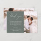 Hochzeit Dankeschön Karten, die ein Foto auf der Vorder- und Rückseite haben. Die Dankeschön-Karten enthalten eine moderne, handgeschriebene, kursive Schriftzeichen-Typografie, die elegant, einfach und modern nach Ihrer Hochzeitsfeier zu benutzen sind.