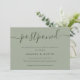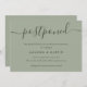 Mit dieser minimalistisch grünen Karte mit einem modernen Script-Schriftart verkünden Sie den Aufschub Ihrer Hochzeit.