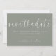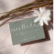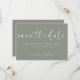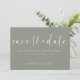 Erzählen Sie Ihren besonderen Tag mit schlichter Eleganz mit dieser sage grünen Hochzeit speichern Sie die Dattelkarte. Dieses Design mit moderner Typografie und einer weichen, minimalistischen Gestaltung eignet sich perfekt für Paare, die eine romantische, elegante oder naturlich inspirierte Hochzeit planen. Passen Sie die Namen, das Datum und die Formulierung an, um Ihren Hochzeitsstil zu erfüllen. Ideal für Frühlings-, Sommer- oder Gartenhochzeiten, verbindet diese Save the Date wunderschön mit passenden weise grünen Einladungen und Schreibwaren. Einfach, stilvoll und zeitlos - genau wie Ihre Liebe.