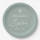Sage Green White Cross Taufe Party Teller