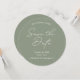 Mit unserer "Sage Green Minimal Wedding Save the Date Round Card" verkünden Sie Ihren besonderen Tag. Mit einem eleganten und modernen Design in elegantem Weiß, Set diese Karte einen raffinierten Ton für Ihre Hochzeit. Personalisieren Sie mit Ihren Namen, Hochzeitstermin, QR-Code, Hochzeitswebsites und Details, um es einzigartig Ihren zu machen. Ideal für Paare, die ein minimalistisches und stilvolles Ankündigung Datum freihalten suchen.