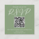 Sage Green White Script QR Code Wedding RSVP Begleitkarte