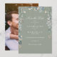 Eine elegante Wildblumen Aquarellblütenhochzeit bewahrt die Dattelkarte mit Ihren Festlichkeiten Details Set in eleganter weißer Typografie auf einem stilvollen Weiß-Weiß-Hintergrund. Mit Ihrem speziellen Foto auf der Rückseite. Entwickelt von Thisisnotme©