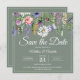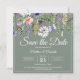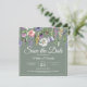 Elegante Weise grün boho Hochzeit speichern Sie das Datum mit Wildblumen. Personalisieren Sie es mit einem QR-Code auf der Rückseite, dass Ihre Gäste scannen können, um einfach Ihre Hochzeitswebsite zu besuchen, um mehr Informationen zu finden.