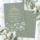 Simple Wildflower Boho Baby Shower Invitation. Perfect for spring through autumn celebrations, this minimalist design features a sage green background on both the front and back for a calm, earthy, and timeless look. A simple white outline wildflower art border sits along the bottom, creating a clean green-and-white palette that feels elegant, modern, and subtly cute.