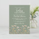 Muted Pastel Boho Botanical Garden Baby Shower Invitation. Celebrate the mom-to-be with this elegant boho design featuring sage green backgrounds on both the front and back for a calm, earthy, and timeless look that works beautifully from spring through autumn. At the top, “Bridal Shower” is displayed in a refined mix of script and serif typography in crisp white for an elegant yet modern feel.
