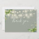 Eine elegante eukalyptus grün botanische Saitenleuchten bedanken sich Karte, personalisiert mit einer besonderen Botschaft auf der Rückseite auf einem sage grünen Hintergrund. Entwickelt von Thisisnotme©