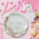 Modern stylish wedding paper plate with elegant watercolor floral sage greenery and dusty white garden roses, elegant modern hand drawn calligraphy. Classy and elegant, soft and modern invitation.