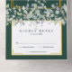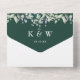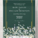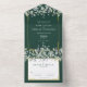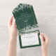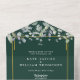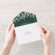 Das Ganze in einer Hochzeitseinladung mit hübschem, grünem Grün und eleganter moderner Typografie auf smaragdgrünem Hintergrund. Die Einladung enthält eine perforierte RSVP-Karte, die für Sie individuell adressiert oder links als leere Adresse für die Handschrift der Adressdaten Ihres Gastes verwendet werden kann. Entwickelt von Thisisnotme©