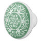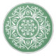 Dieses weiße Mandala liegt auf einem graugrünen Hintergrund. Die Farben sind natürlich und entspannend. Teil der Rosenn Mandala Kollektion.