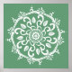 Dieses weiße Mandala liegt auf einem graugrünen Hintergrund. Die Farben sind natürlich und entspannend. Teil der Payon Mandala Kollektion.