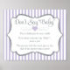 Ein lustiges, geschlechtsneutrales Baby-Duschspiel namens "Don't Say Baby!" in Lavender Lilac und weiße Streifen mit silbergrauen Imitaten Glitzer Text Rahmen und Text. Bearbeiten Sie den Text, wenn Sie etwas anstelle von Kleiderlebern verwenden möchten!