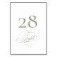 Sage on White Elegant Calligraphy Wedding Tischnummer